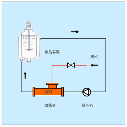 采用管道式HQS汽水混合加热器,循环加热容器加热水,实现容器加热或保温。
