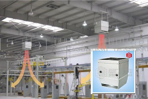 高大空间循环加热暖风机采用钢铝复合管散热器、外转子轴流风机、旋流喷口、全面喷塑防腐处理的外壳及安装框架等部件组成;结构合理,安装方便,具有防尘、噪音低、效率高、外型美观等特点。对大空间来讲既能起到通风采暖效果又合适得体美观大方,是高大空间的专属采暖设备。