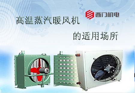 所谓高温蒸汽暖风机是相对常温蒸汽型暖风机而言的,一般是指风机中电机的温度承受范围。当环境温度高于45℃时或潮湿时,为保证暖风机安全和使用寿命需使用耐高温风机,因此,它的适用场所就很明确了,环境温度高于45度的采暖、通风、烘干场所。以下是西门机电的应用举例。
