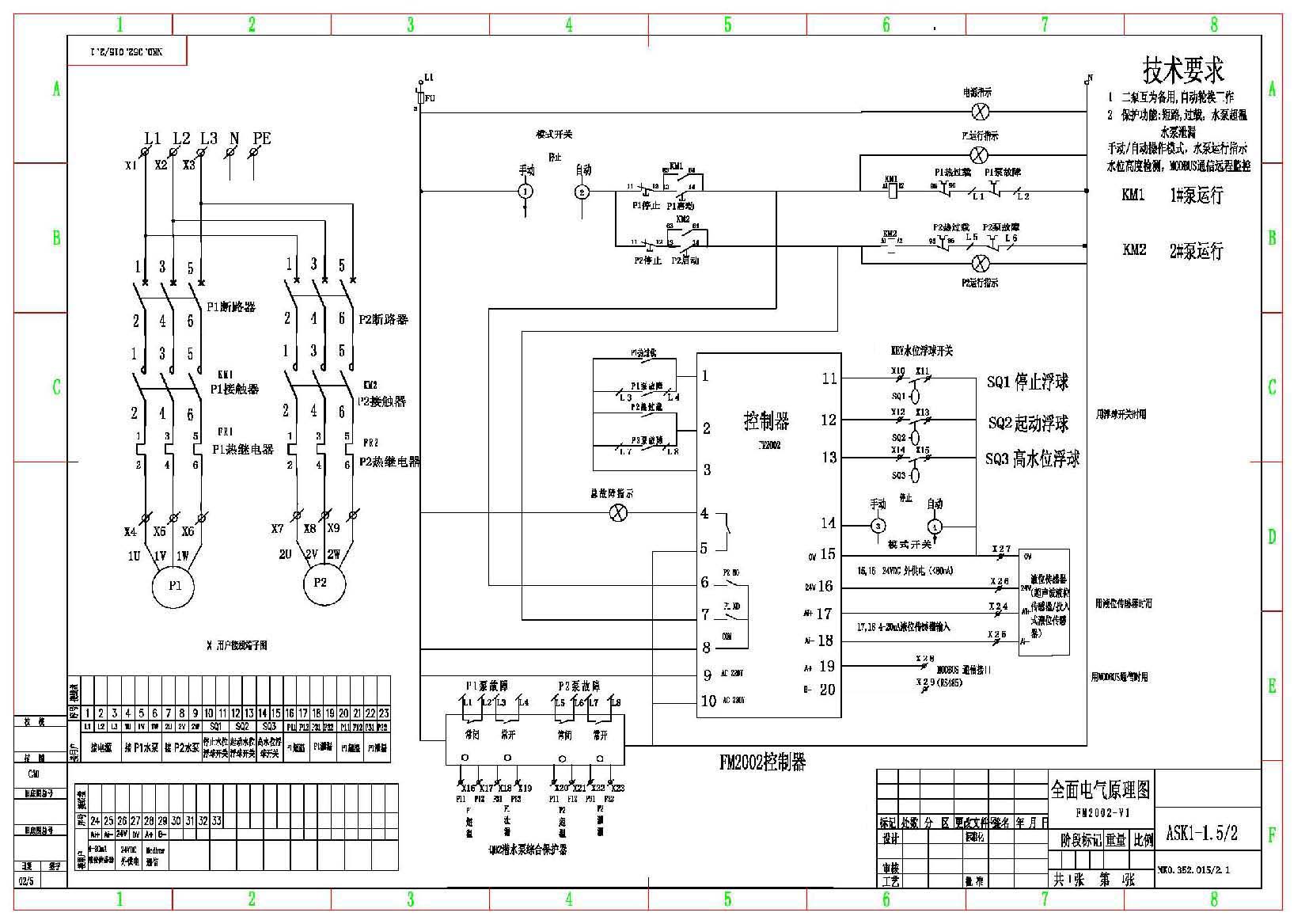 三.FM(2002)给排水型水泵智能控制器 技术指标