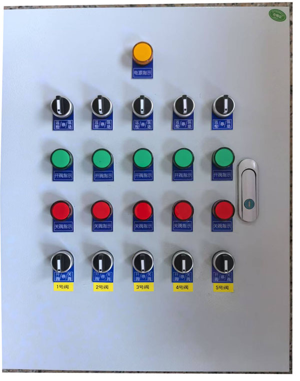 接通阀门控制箱的电源后,电源指示灯亮,现场/远控指示灯显绿色,电动阀门控制箱为远控状态。