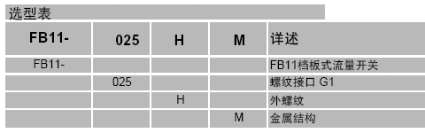 FB11型挡板式流量开关(靶式流量开关) 型号