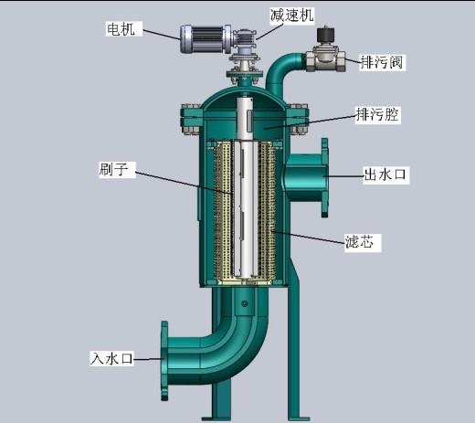 过滤属于水的净化过程中不可缺少的处理手段,用于拦截水中的杂质,以净化水质或保护系统中其他设备的正常工作。普通网式过滤器因其过滤效果好、阻力小而广泛应用于水源过滤、工业循环水系统等领域,但其缺点是纳污量小、易受污物堵塞、清洗工作复杂,必须对设备进行拆卸才能实现对过滤部分的清洗,无法监控过滤器的状态,而且受人为因素影响比较大,使整个系统的自动化程度很低。全自动自清洗过滤器具有对原水进行过滤并自动对滤芯进行清洗排污的功能,且清洗排污时系统不间断供水。该设备与以往的过滤器相比具有自动化程度高,处理量大,可自行清洗排污,并不间断供水,应用面广泛等优点。
