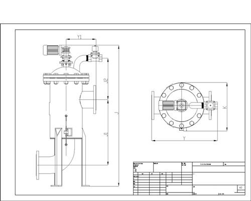 结构见图1,采用机电一体化设计。 BYJK-K型系列全自动自清洗过滤器由驱动机构、控制管路(包括压差开关)、主管组件、滤芯组件、清洗机构、连接法兰等主要零部件组成。 电控器、控制管路和排污阀构成过滤器的控制部分,用于实现自动清洗排污过程。 控制管路由压差开关、管接头、黄铜管等附件组成。 过滤器常规产品使用不锈钢转刷,也可根据不同的使用条件(水温、水质),选用其它材质的转刷。