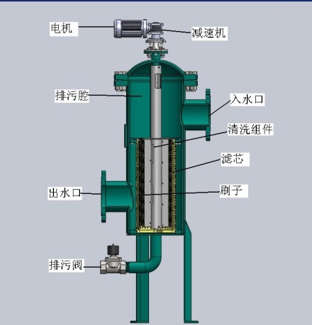过滤属于水的净化过程中不可缺少的处理手段,用于拦截水中的杂质,以净化水质或保护系统中其他设备的正常工作。普通网式过滤器因其过滤效果好、阻力小而广泛应用于水源过滤、工业循环水系统等领域,但其缺点是纳污量小、易受污物堵塞、清洗工作复杂,必须对设备进行拆卸才能实现对过滤部分的清洗,无法监控过滤器的状态,而且受人为因素影响比较大,使整个系统的自动化程度很低。全自动自清洗过滤器具有对原水进行过滤并自动对滤芯进行清洗排污的功能,且清洗排污时系统不间断供水。该设备与以往的过滤器相比具有自动化程度高,处理量大,可自行清洗排污,并不间断供水,应用面广泛等优点。